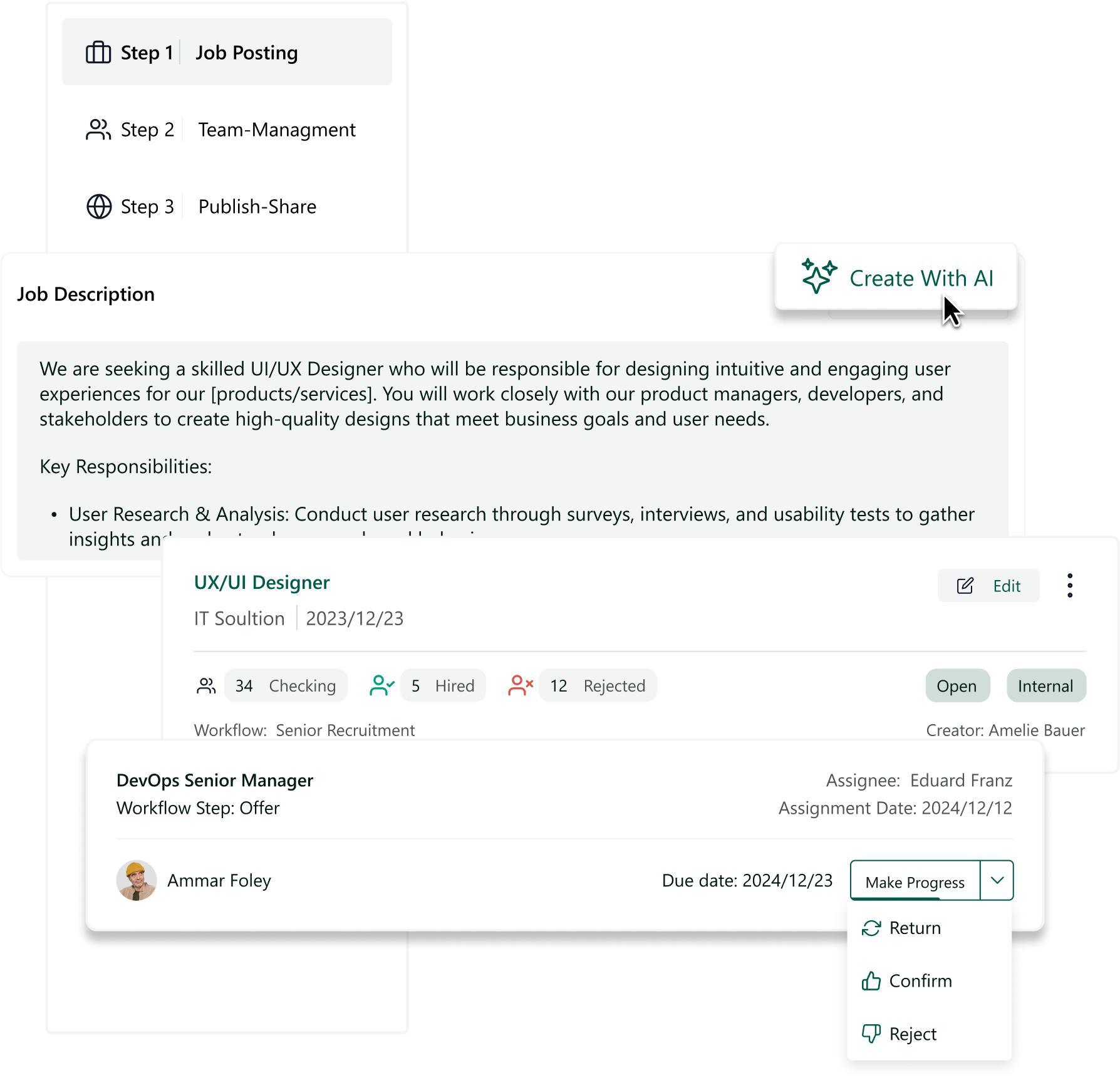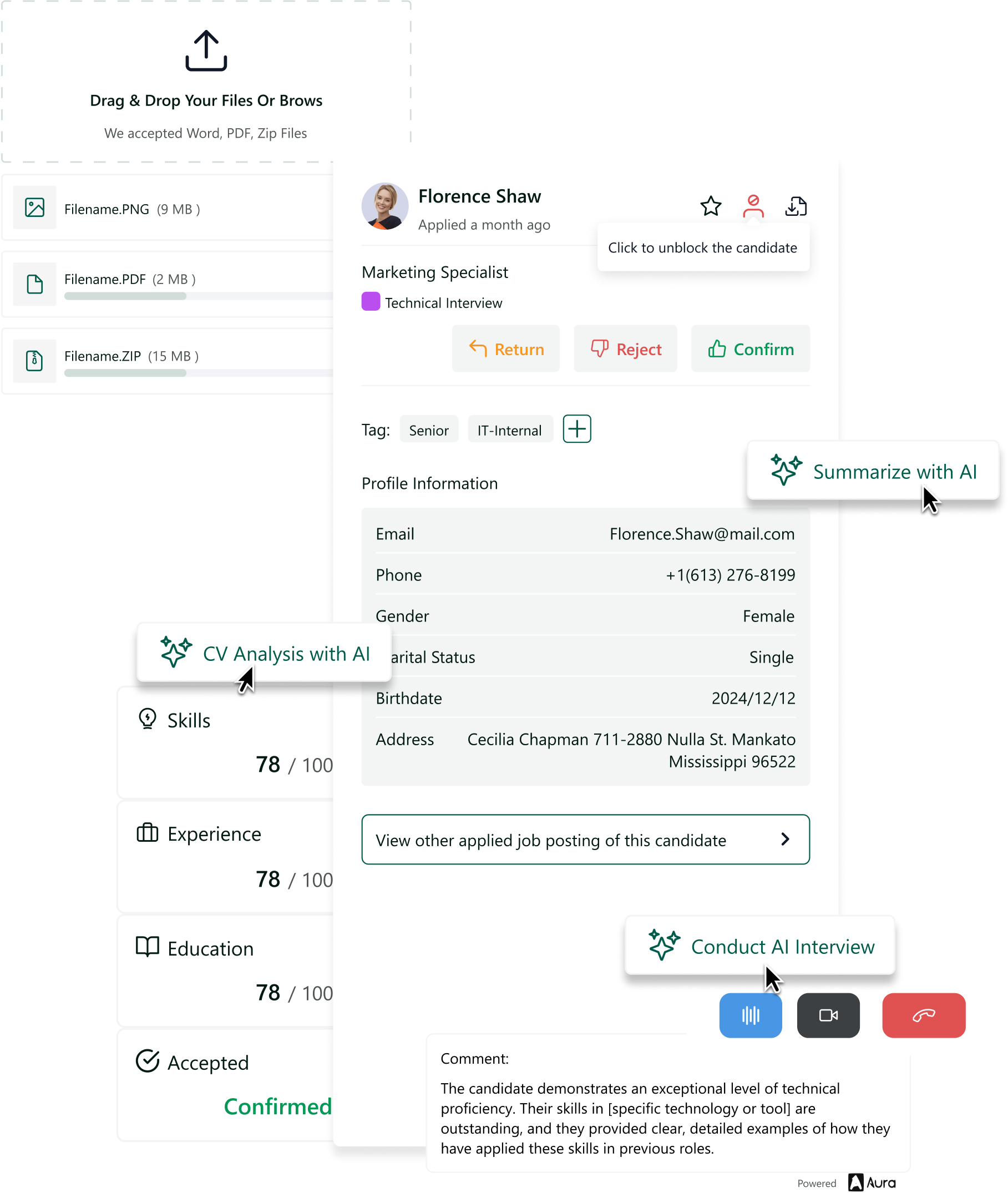 Leverage AI for detailed CV analysis, objective interview evaluations, and actionable insights to make informed hiring decisions.